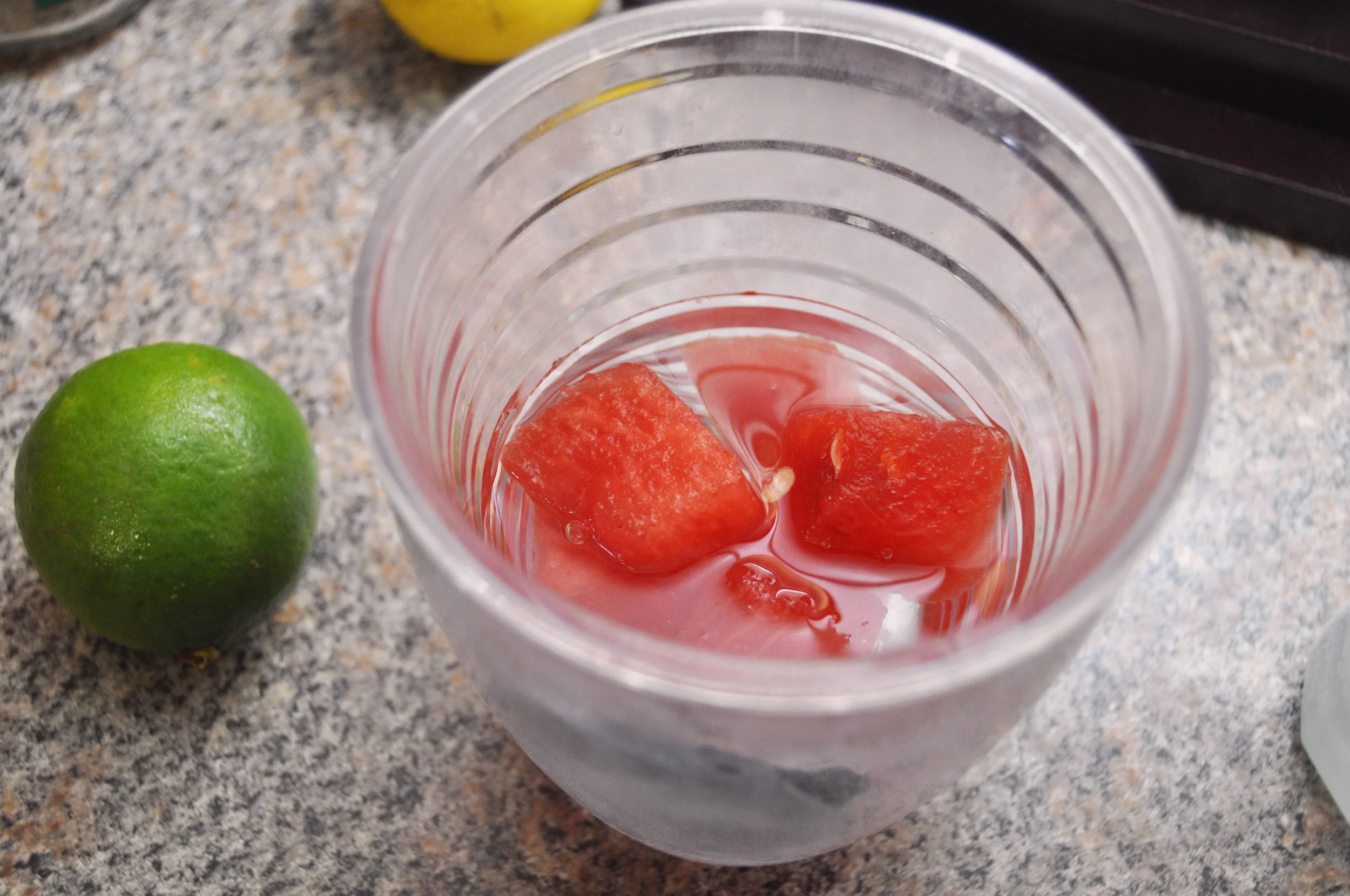Are you wondering about the fruit at the bottom of your cup? You may think the vodka is all gone, that it blended into the rest of your drink, replaced by wine, seltzer, or water from the ice. Au contraire. This vodka-infused watermelon is your last cocktail of the day, the one you have on the porch, in the dark so as not to disturb nesting loggerheads, while you listen to the waves, watch for deer in the dunes, and talk softly with your friends. You may be pleasantly surprised by how much booze is still in that watermelon.
